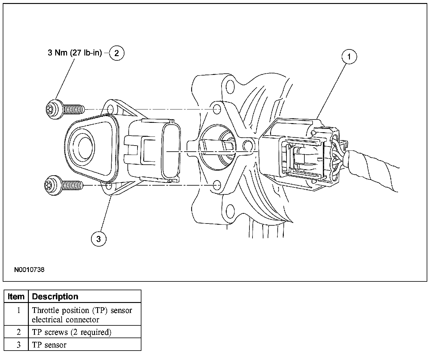 NOTE: When installing the new TP sensor, make sure that the radial locator tab on the TP sensor is aligned with the radial locator hole on the throttle body.