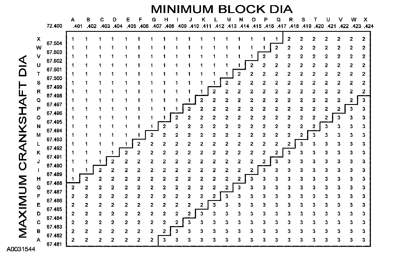 Main bearing size codes
