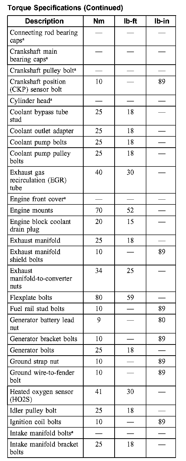 Torque Specifications