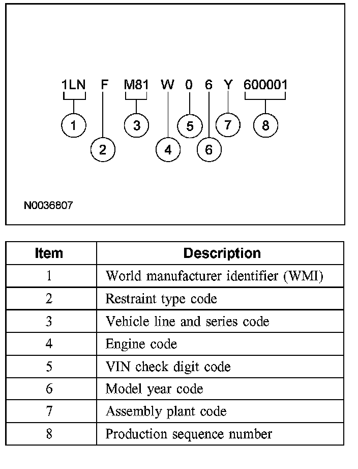 Positions 5 through 7 indicate vehicle line and series code.
