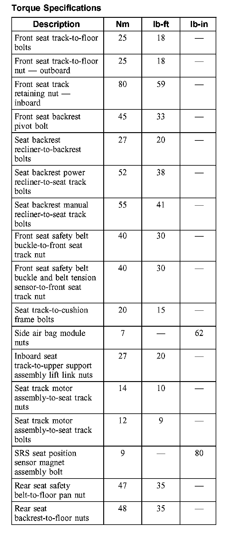 Torque Specifications: