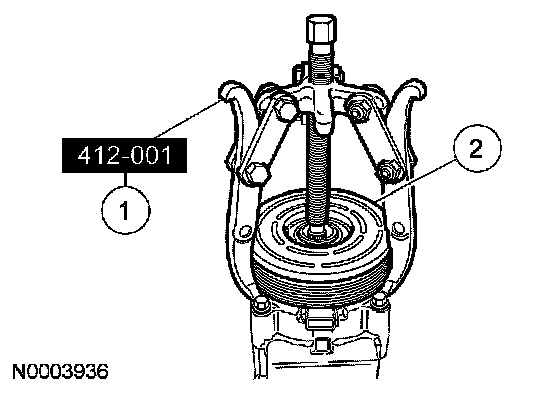 4 Use special tool 412-001 to install the A/C clutch field coil.