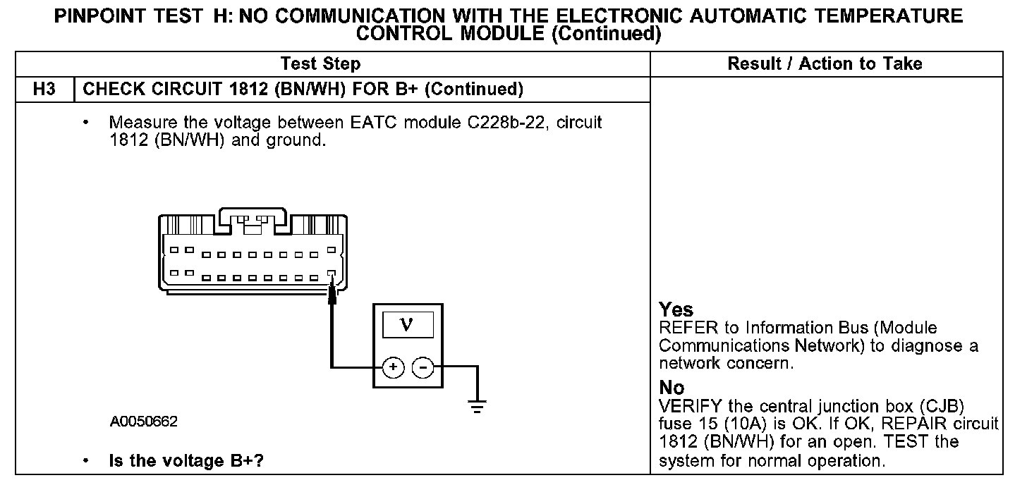 Test H: No Communication With The Electronic Automatic Temperature Control Module