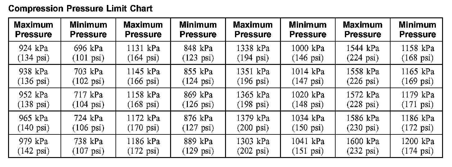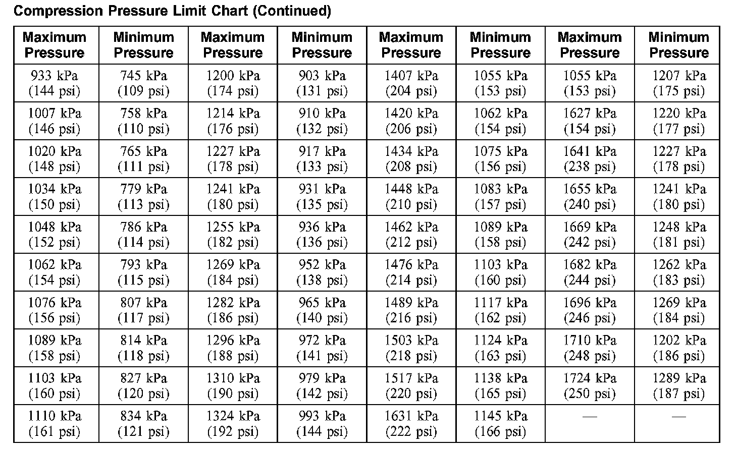 Use the Compression Pressure Limit Chart when checking cylinder compression so that the lowest reading is within 75% of the highest reading.
