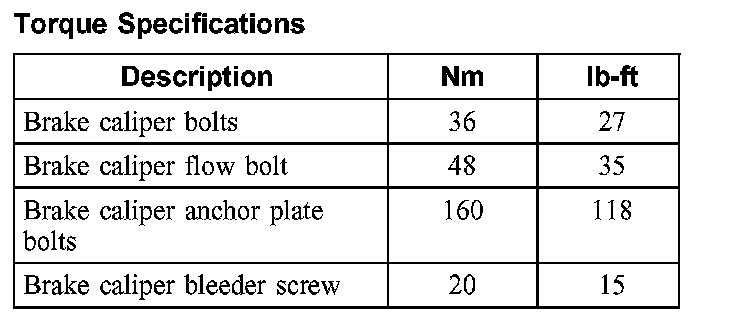 Torque Specifications, Front