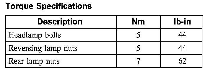 Torque Specifications: