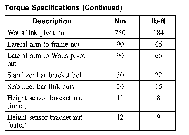 Torque Specifications: