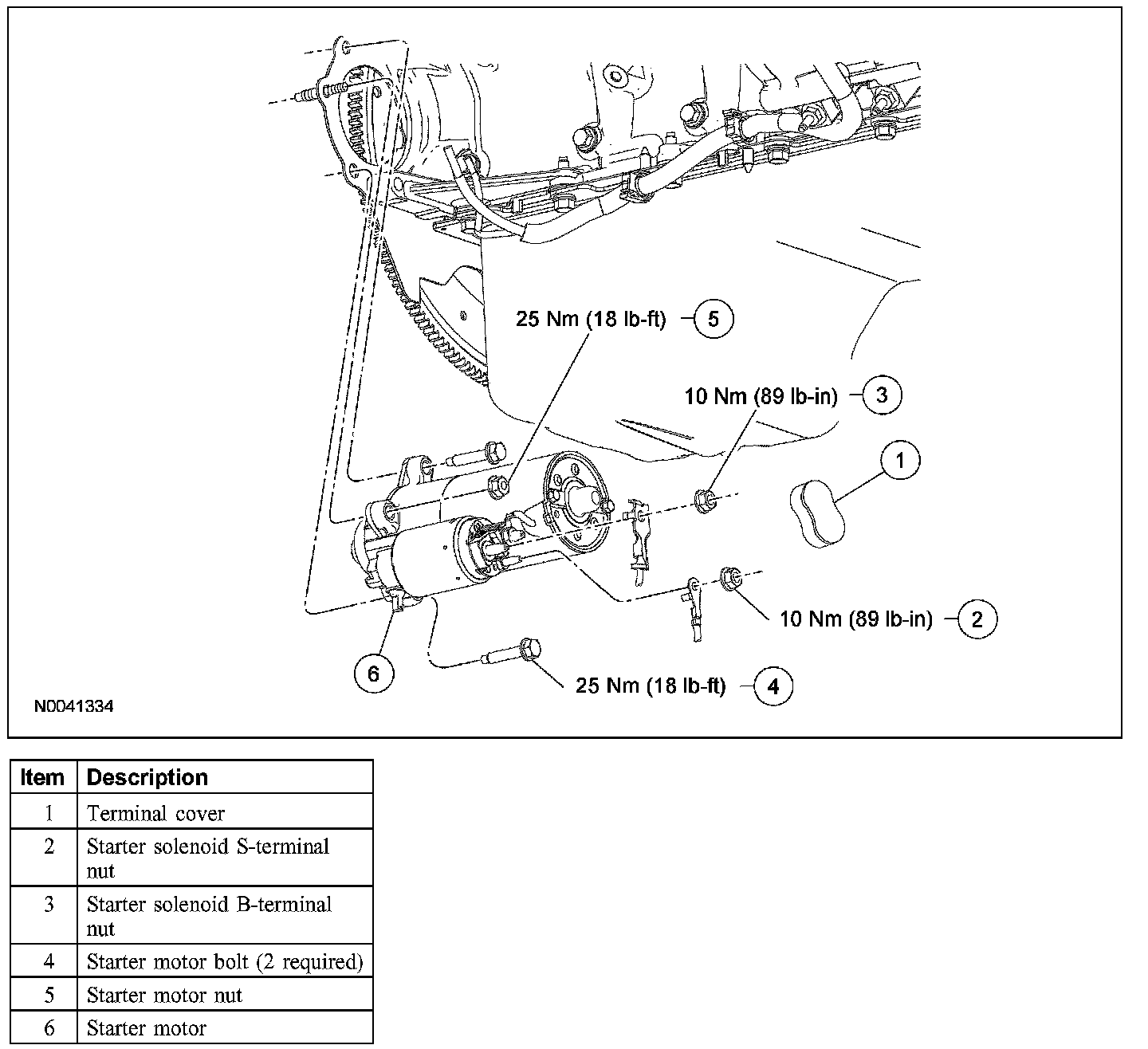 - Install the nut and the upper and lower starter bolts finger-tight.