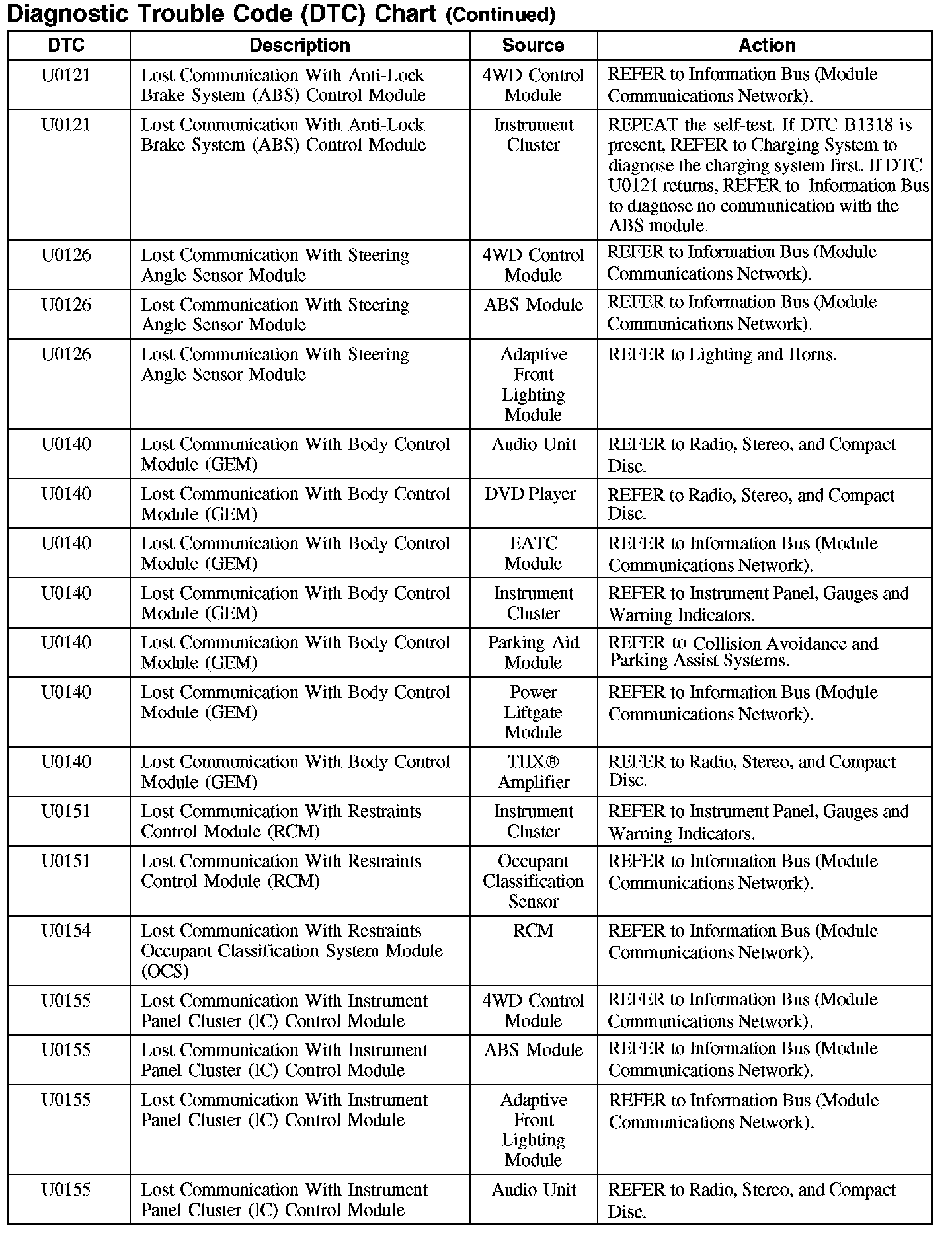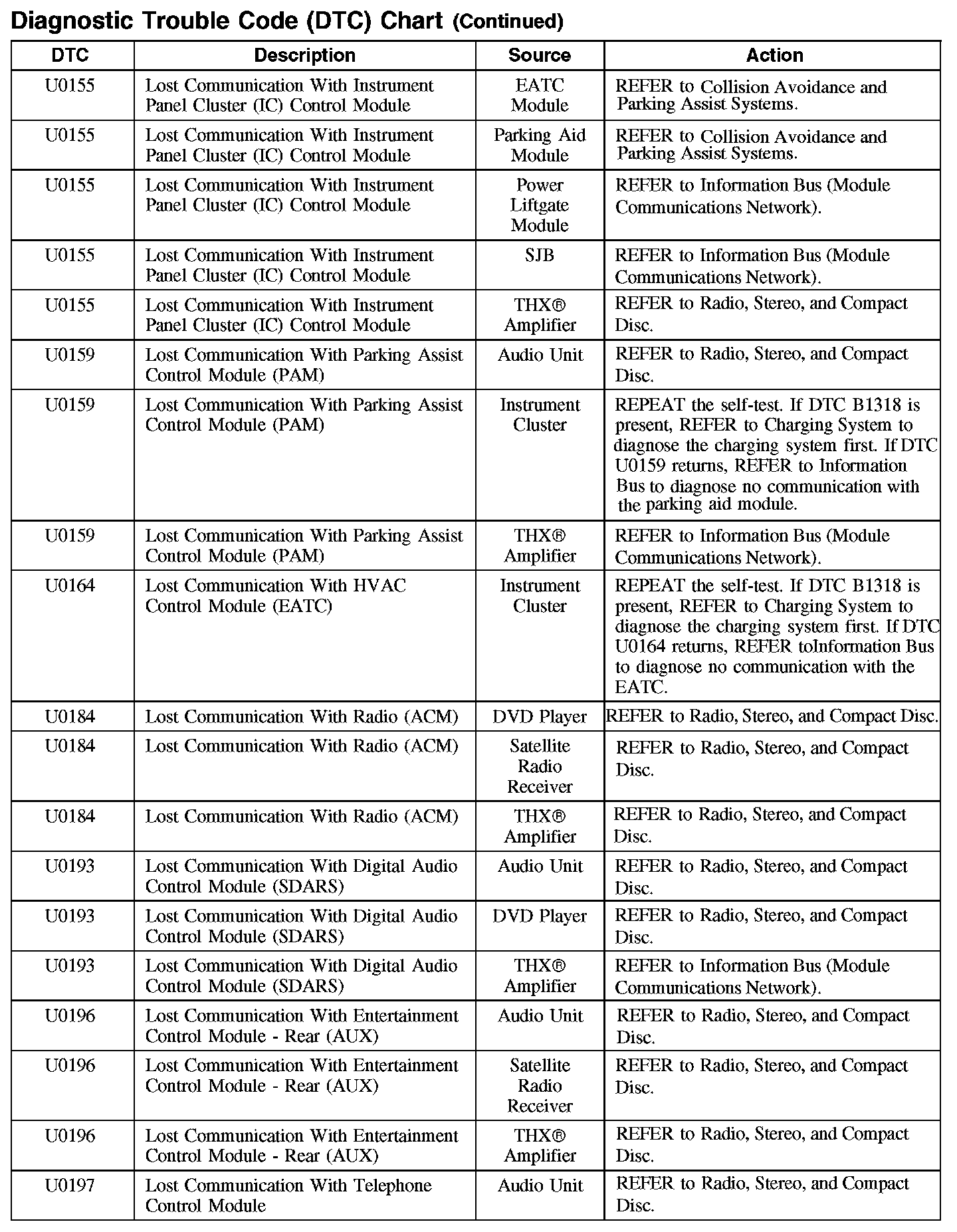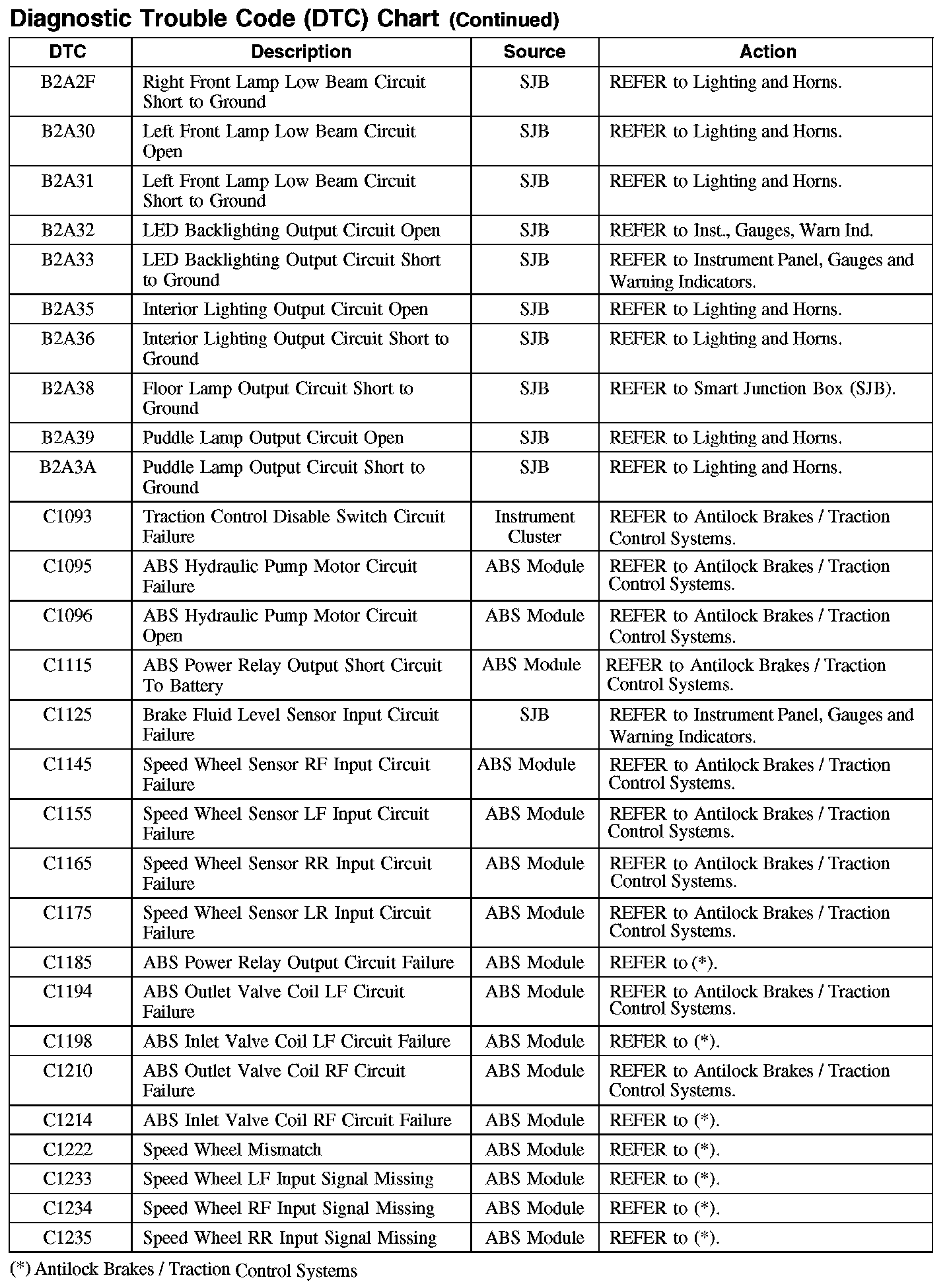 DIAGNOSTIC TROUBLE CODE (DTC) CHARTB100B-B106E:
