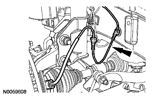 6. CAUTION: The wheel speed sensor harness must be routed as shown or damage to the harness during vehicle jounce and rebound can occur.