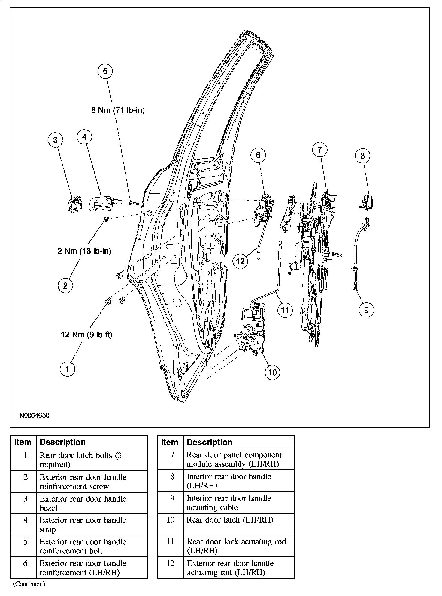 Rear Door Handles, Locks and Latches - Exploded View