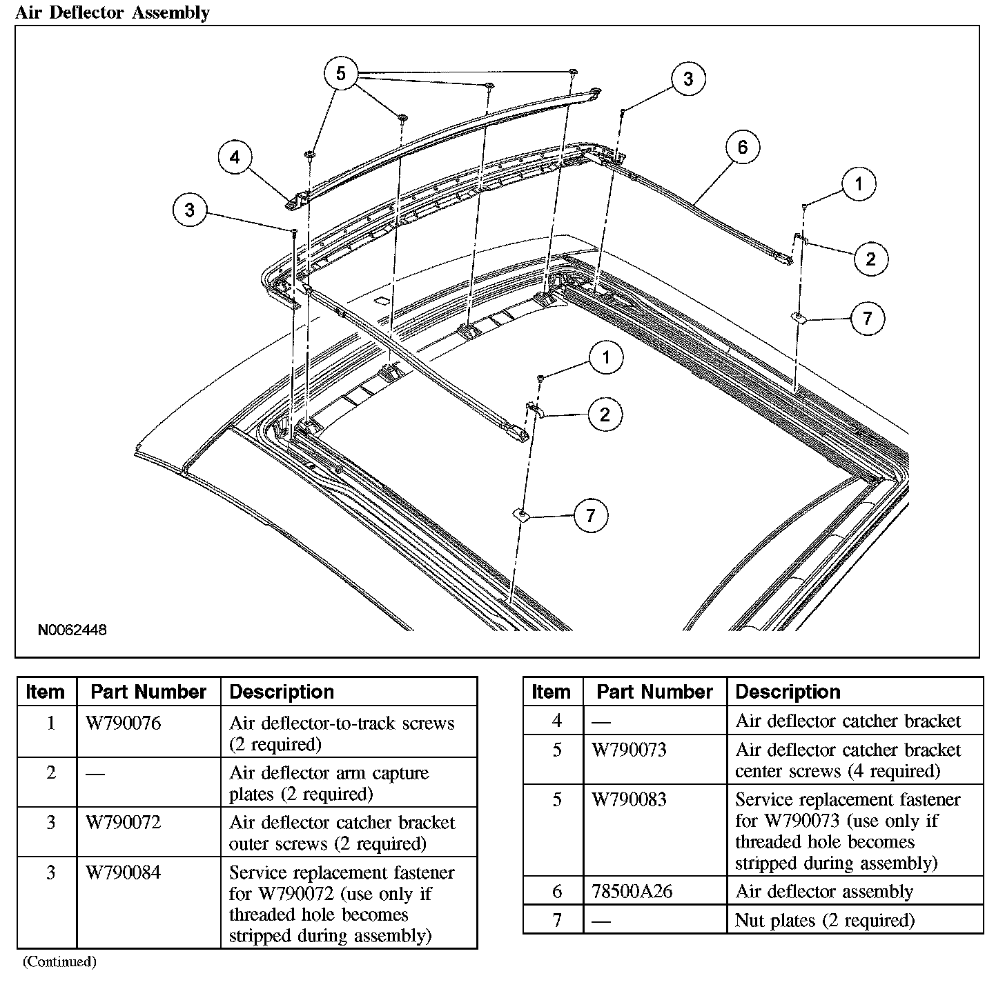 ROOF OPENING PANEL - EXPLODED VIEWExterior Trim, Seals, Fixed Glass And End Caps:
