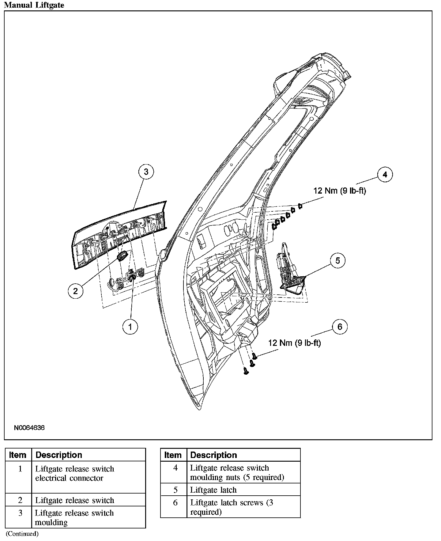LIFTGATE HANDLE, LOCK AND LATCH - EXPLODED VIEW