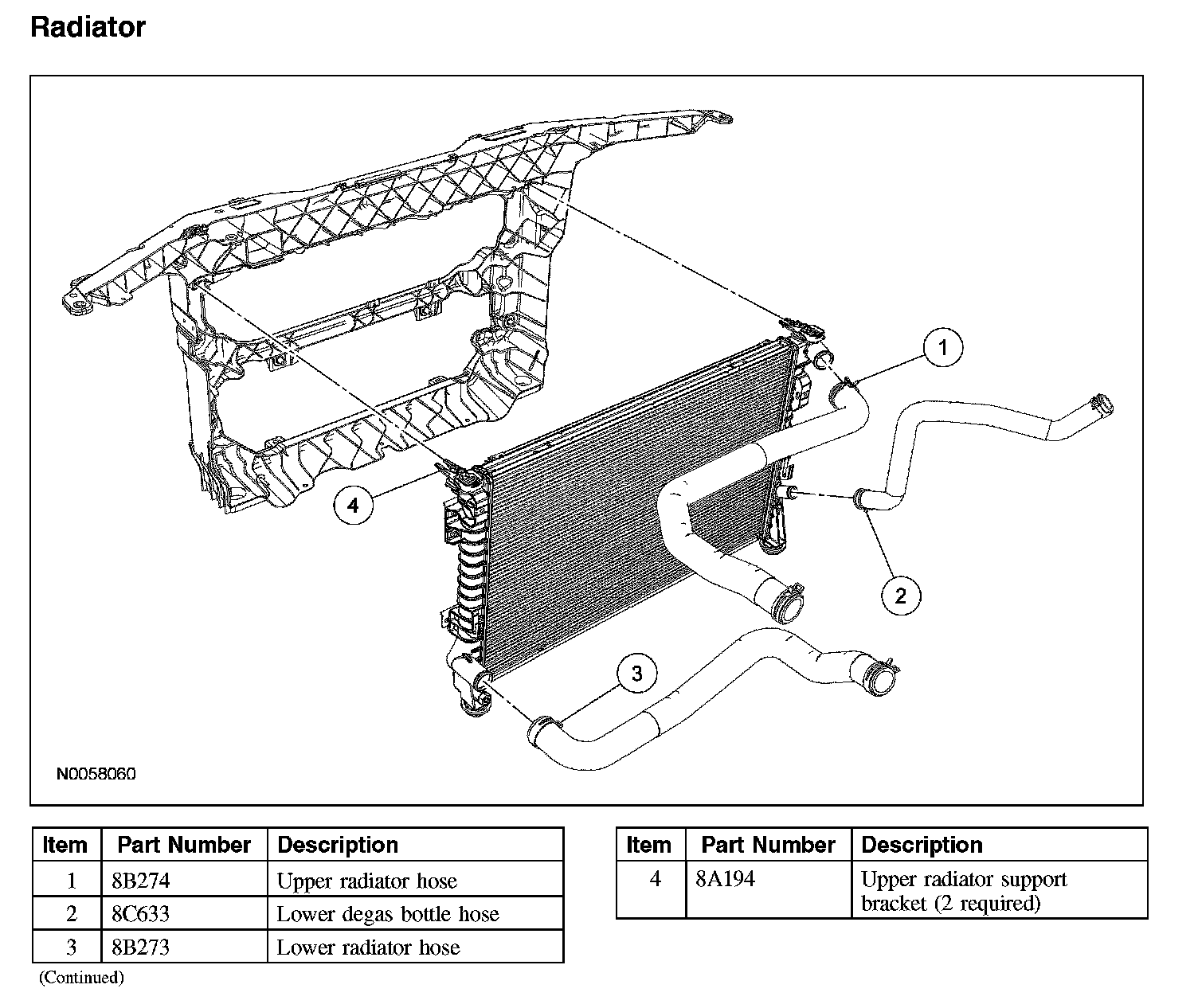 6. Lift and remove the tabs from the radiator support and position the radiator towards the engine.