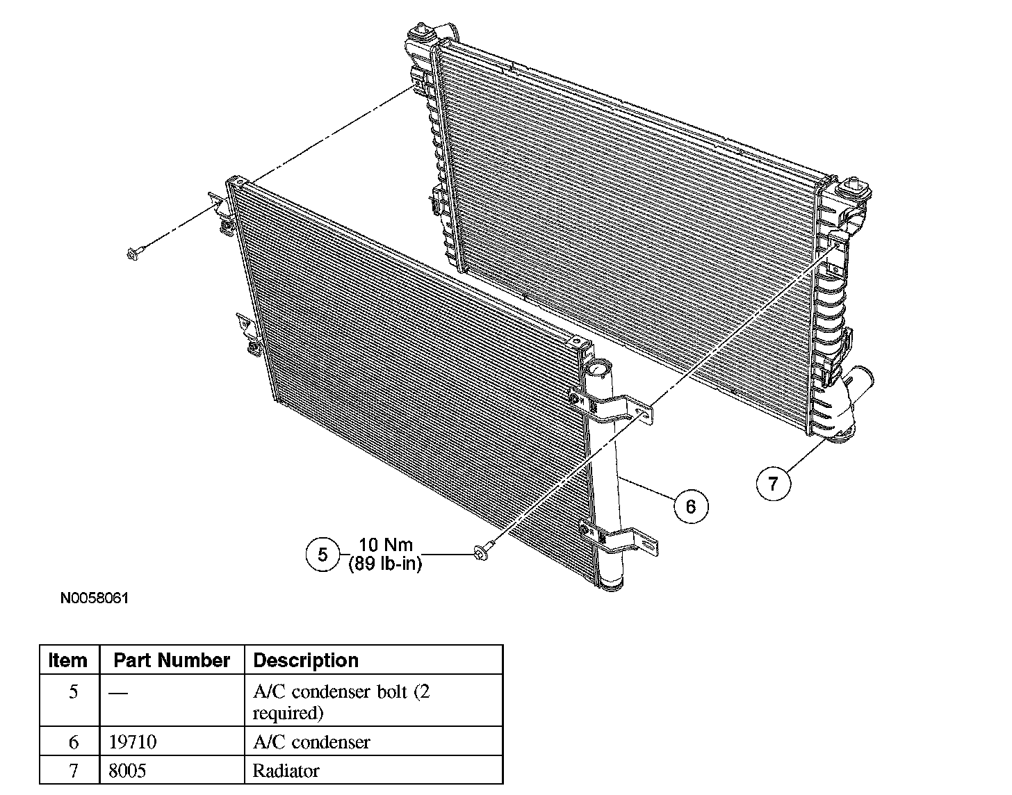 7. Remove the 2 A/C condenser bolts from the radiator and separate the condenser from the radiator.
