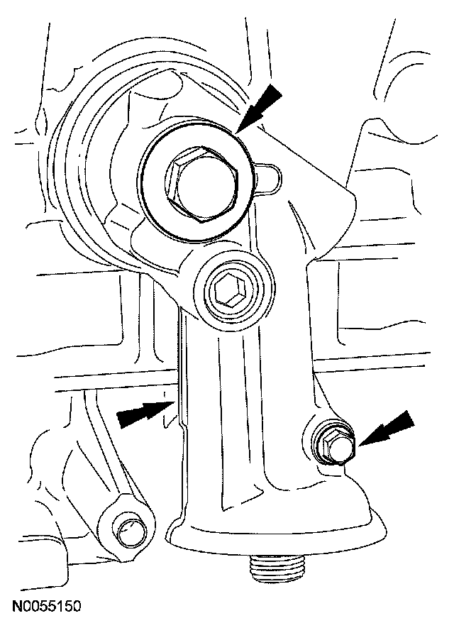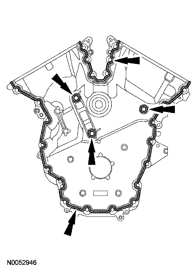 Apply a 3.0 mm (0.11 inch) bead of silicone gasket and sealant to the engine front cover sealing surfaces including the 3 engine mount bracket bosses.