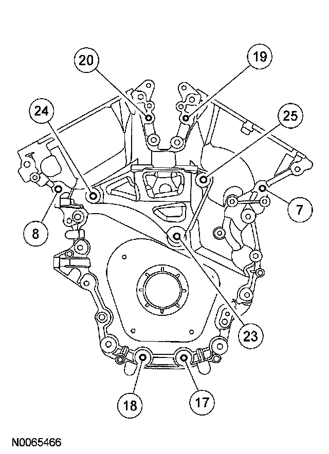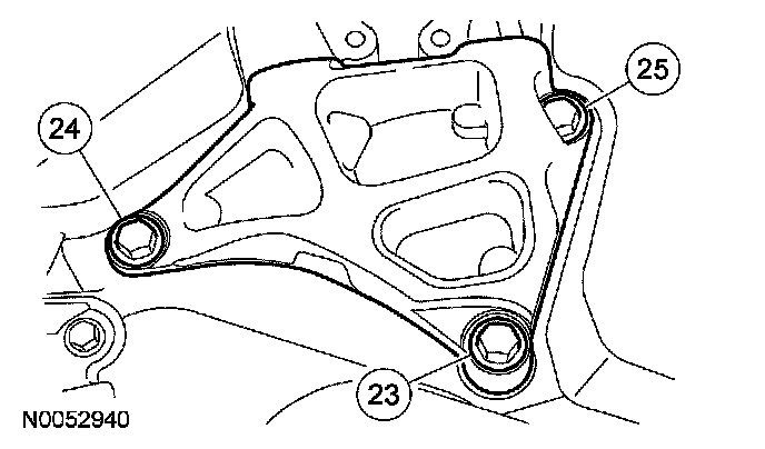 51. NOTE: If the engine front cover, engine mount bracket and bolts 7, 8, 17, 18, 19, 20, 23, 24 and 25 are not installed and tightened within 10 minutes of sealant application, the sealant must be removed and the sealing area cleaned. To clean the sealing area, use silicone gasket remover and metal surface prep. Follow the directions on the packaging. Failure to follow this procedure can cause future oil leakage.