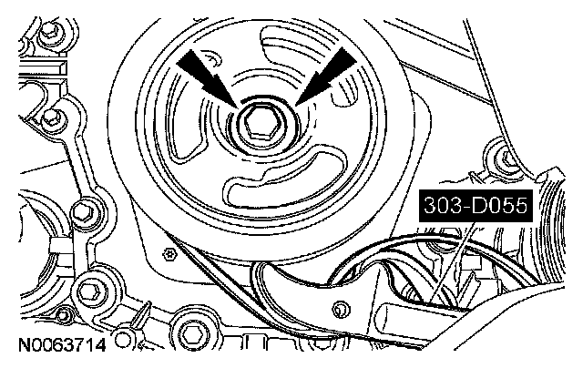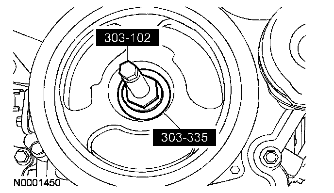 60. Using the special tool, install the crankshaft pulley washer and new bolt and tighten in 4 stages.