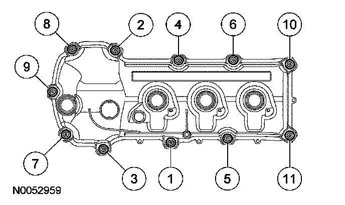 64. NOTE: If the valve cover is not installed and the fasteners tightened within 5 minutes, the sealant must be removed and the sealing area cleaned. To clean the sealing area, use silicone gasket remover and metal surface prep. Follow the directions on the packaging. Failure to follow this procedure can cause future oil leakage.