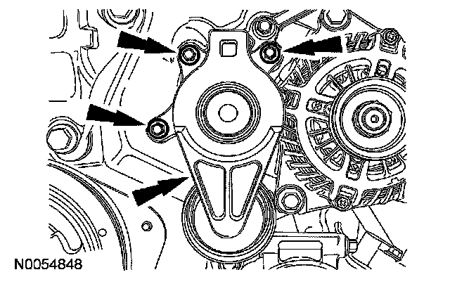 90. Install the accessory drive belt tensioner and the 3 bolts.