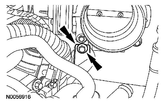 103. Install the wiring harness retainer bolt on the rear of the LH cylinder head.