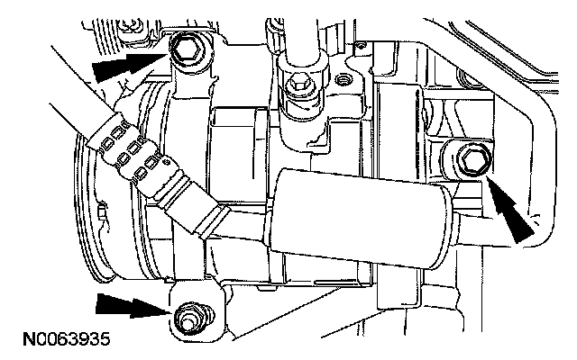 43. Remove the nut, 2 bolts and the A/C compressor.