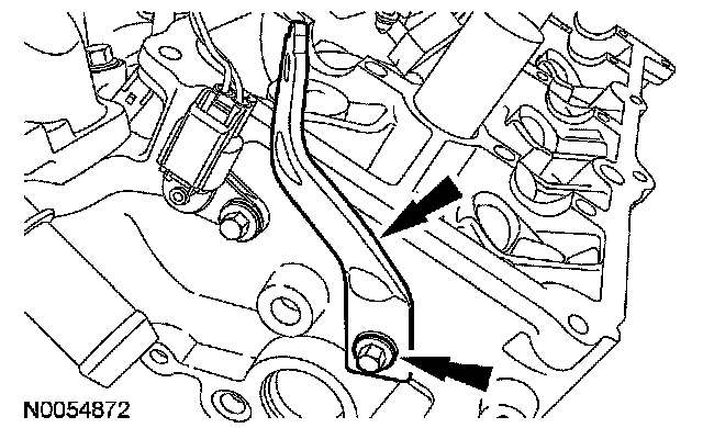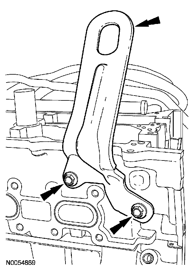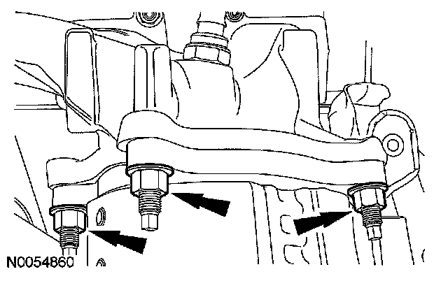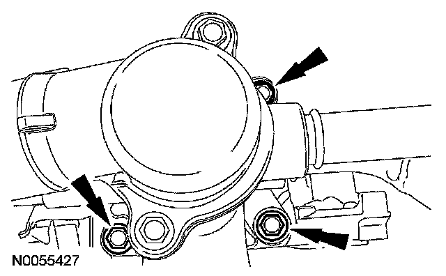 67. Remove the 3 thermostat housing-to-lower intake manifold bolts.