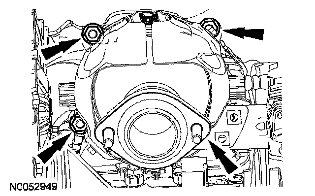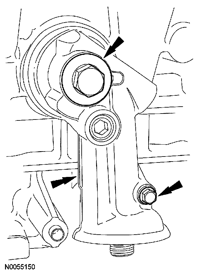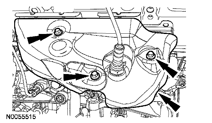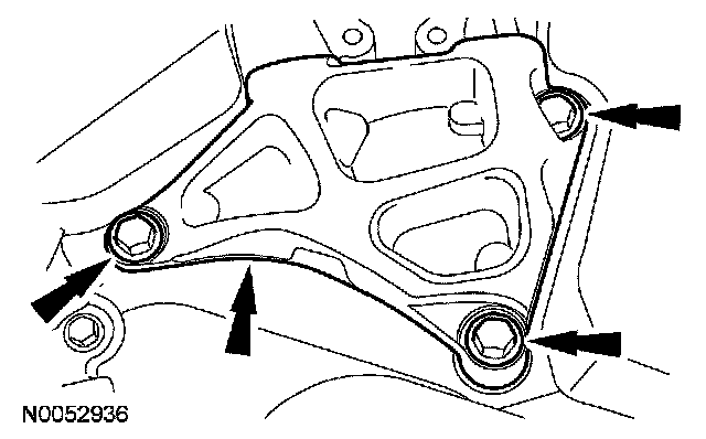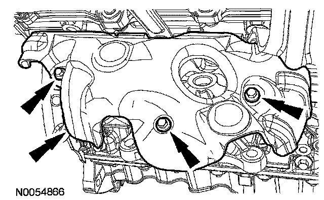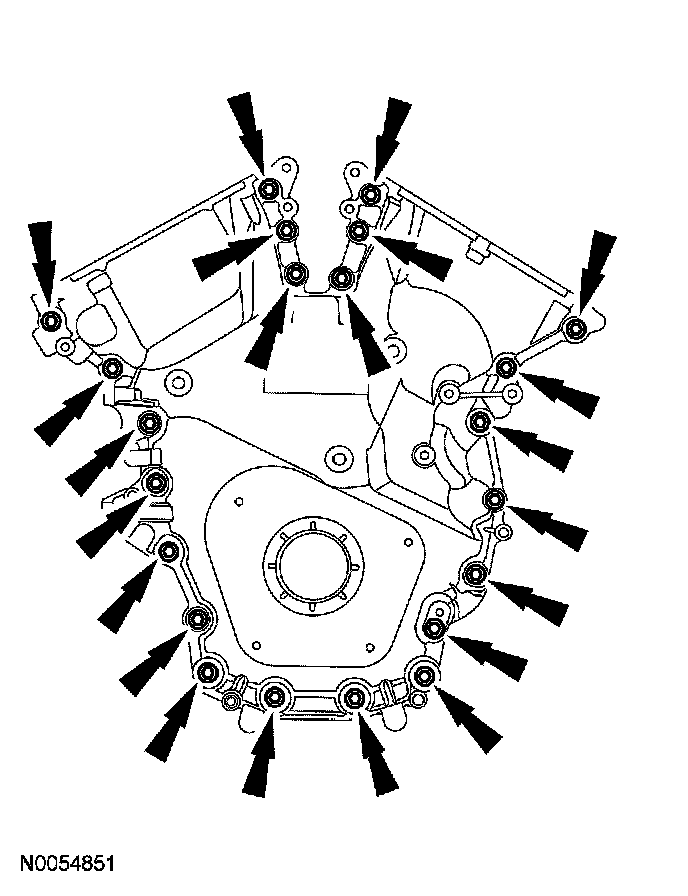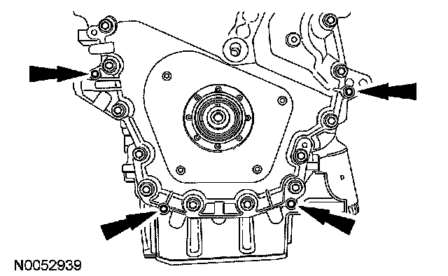 1 Tighten the bolts one turn at a time in a criss-cross pattern until the engine front cover-to-cylinder block seal is released.