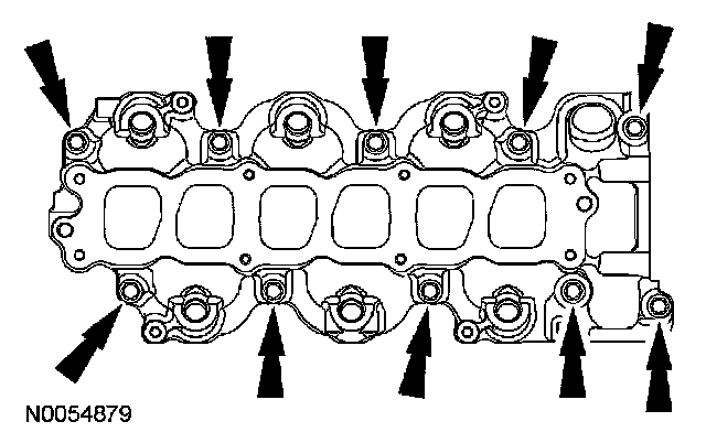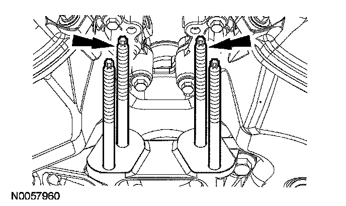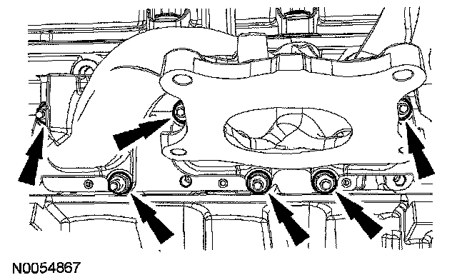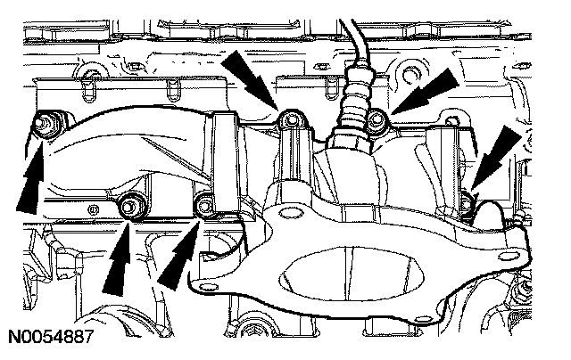 57. Remove and discard the 6 RH exhaust manifold studs.