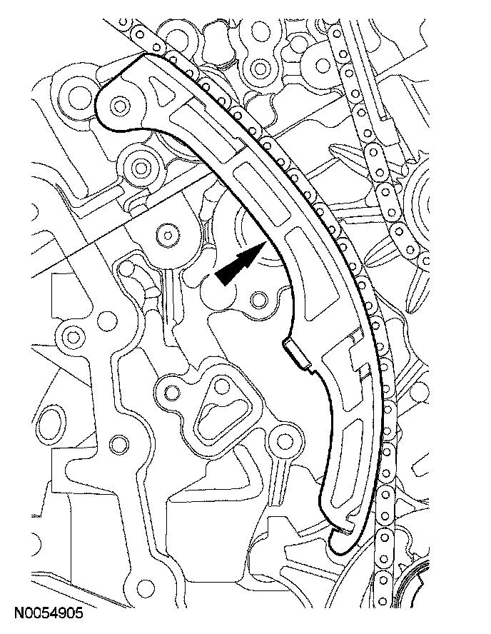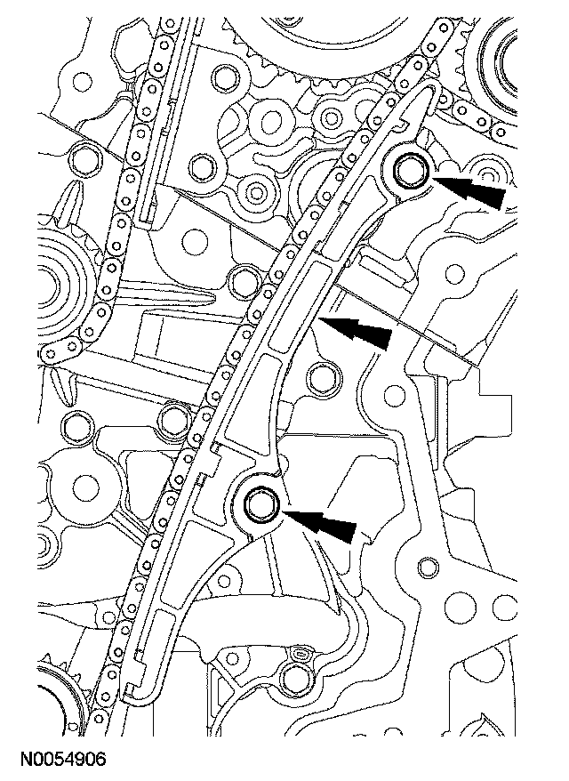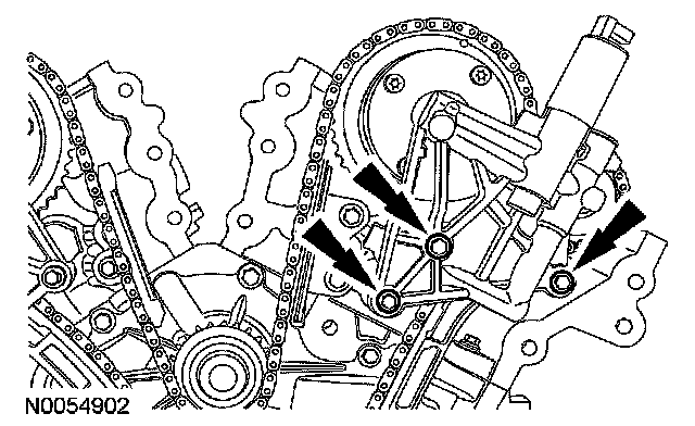 ^ Remove the LH VCT assembly, secondary timing chain and the LH exhaust camshaft sprocket as an assembly.