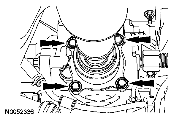 44. Line up the index marks on the rear driveshaft to the index marks on the PTU flange made during removal and install the 4 bolts.