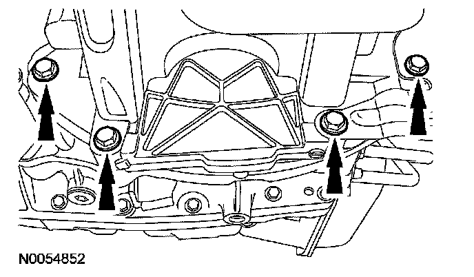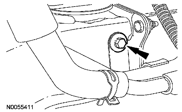 45. Install the power steering cooler bracket bolt to the RH side of the subframe.