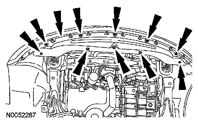 54. Install the radiator splash shield, the 3 pin-type retainers and the 7 screws.
