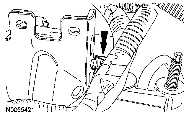 59. Attach the wiring harness retainer to the RH valve cover stud bolt.