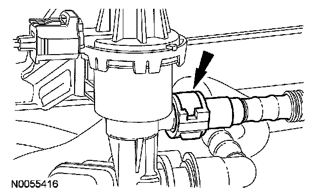 72. Connect the upper evaporative emissions (EVAP) tube quick connect coupling to the purge valve. For additional information, refer to Fuel Delivery and Air Induction.