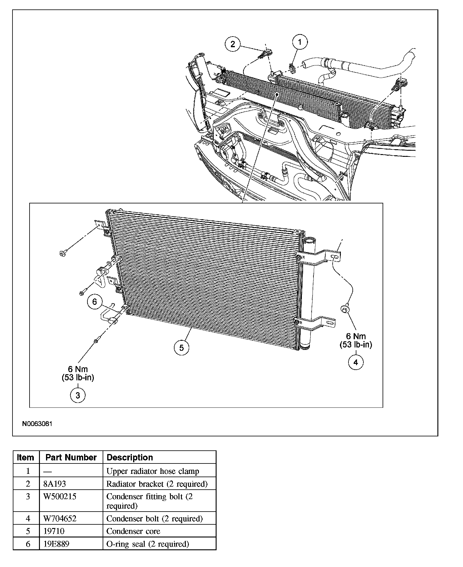 11. NOTE: The condenser core must be removed from above the vehicle.