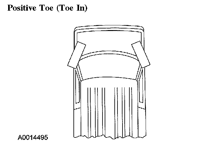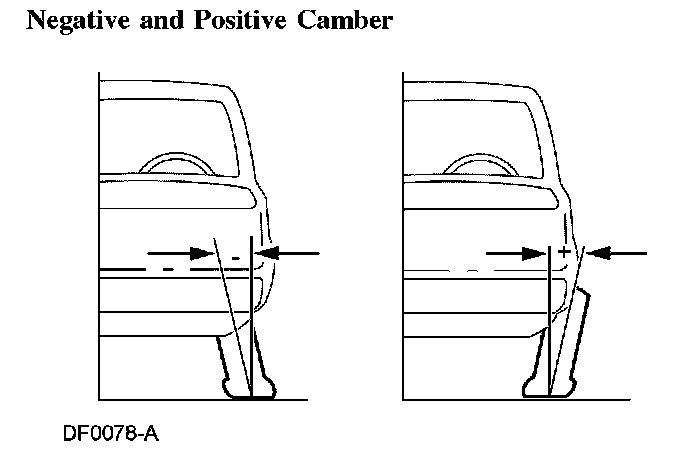Wheel Alignment AnglesNOTE: When making rear alignment adjustments, it is important to know that when adjustments are made to the rear toe, the rear camber will also be adjusted (in the same direction as the toe adjustment). When making adjustments to the rear camber, the rear toe will also be adjusted (in the opposite direction of the camber adjustment). It will be necessary to check the rear camber whenever rear toe adjustments are made and to check the rear toe whenever rear camber adjustments are made.