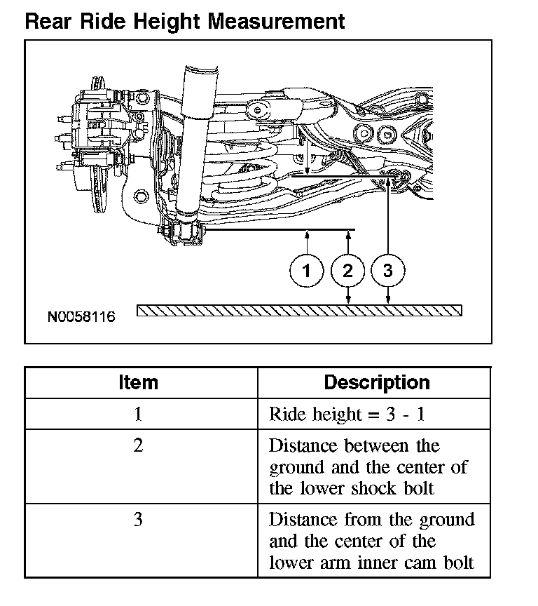 To measure ride height, the vehicle must be in a level, static ground position with full fluids and a full fuel tank.