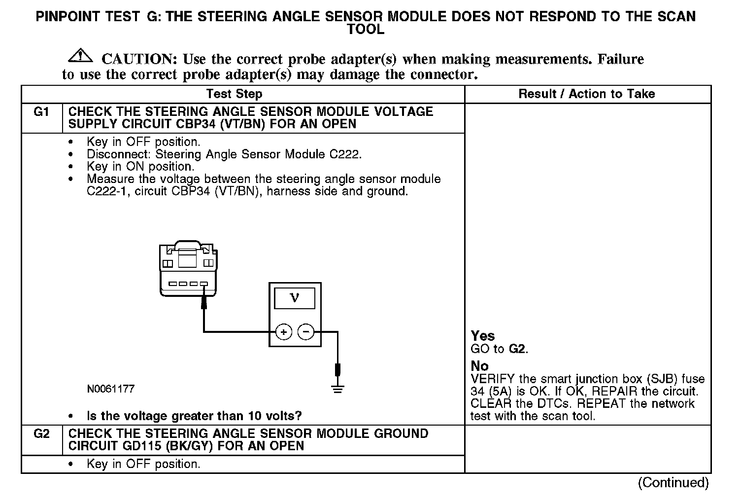 PINPOINT TEST G: THE STEERING ANGLE SENSOR MODULE DOES NOT RESPOND TO THE SCAN TOOLG1-G2: