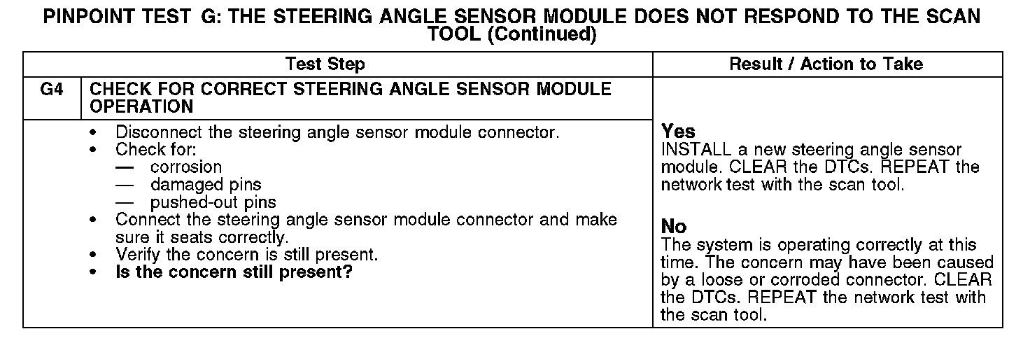 Test G: The Steering Angle Sensor Module Does Not Respond To The Scan Tool