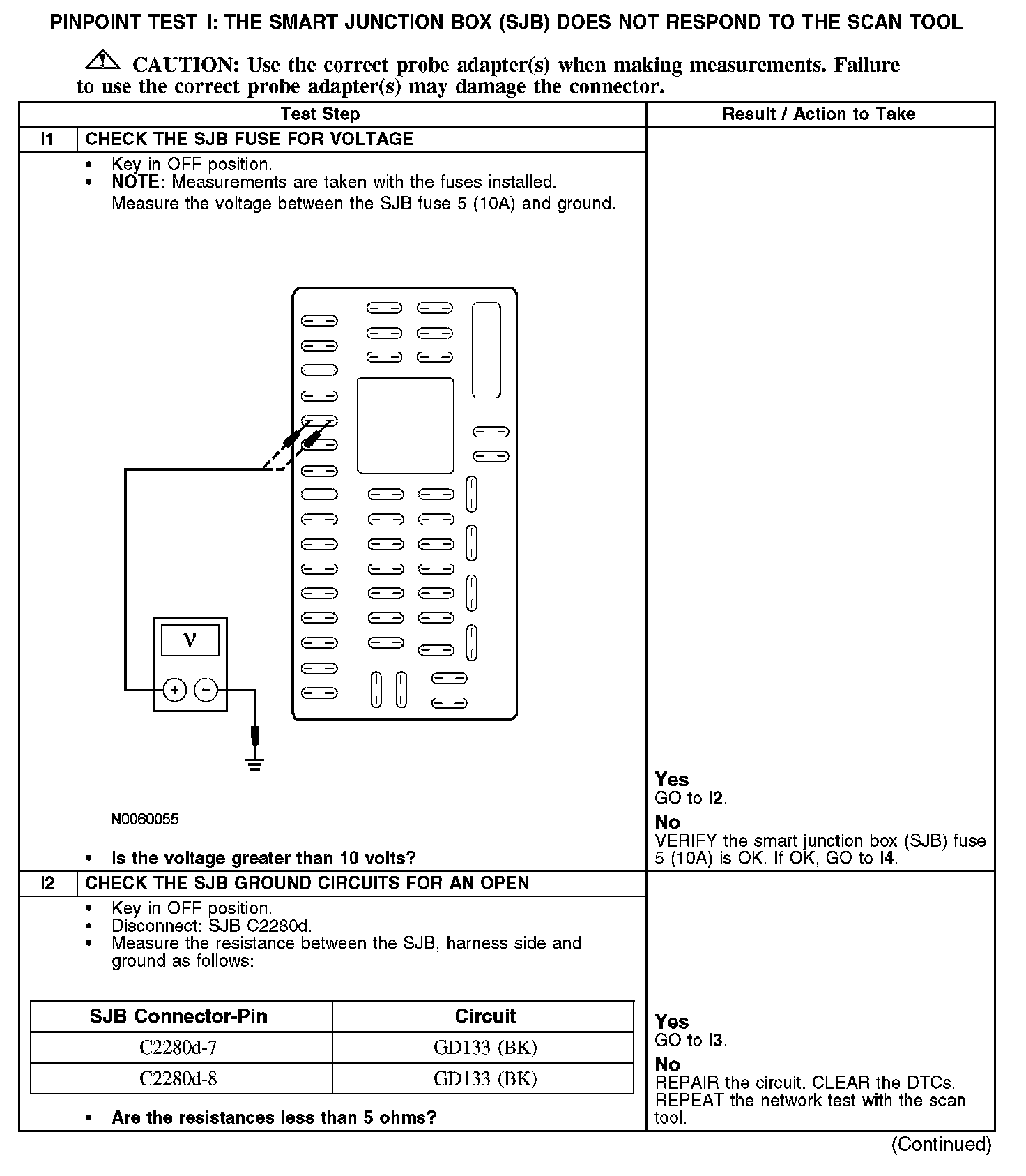 Test I: The Smart Junction Box (SJB) Does Not Respond To The Scan Tool