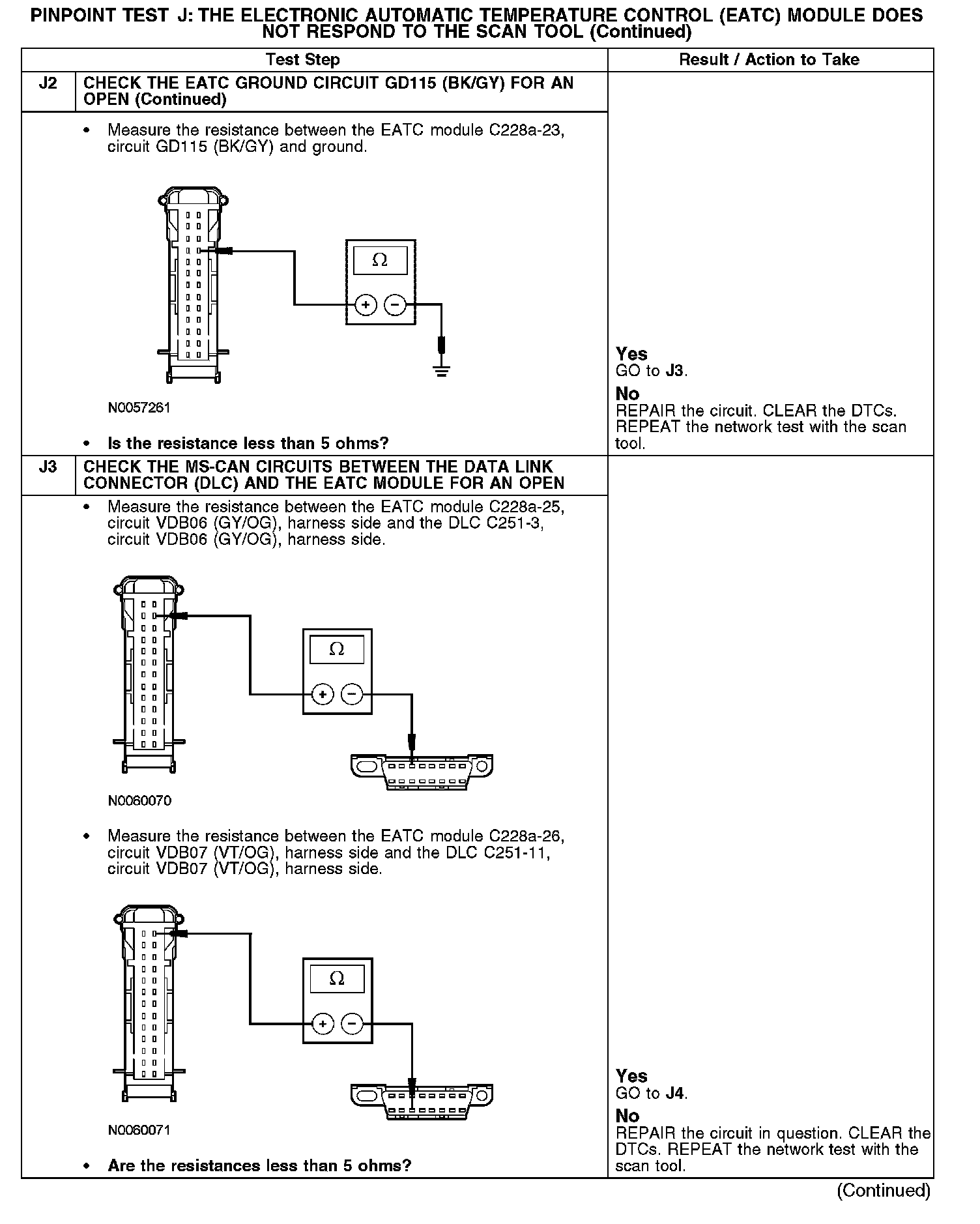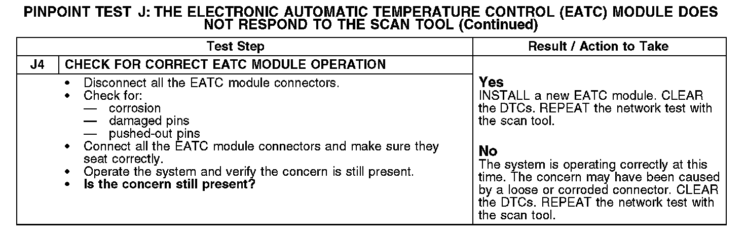 PINPOINT TEST J: THE ELECTRONIC AUTOMATIC TEMPERATURE CONTROL (EATC) MODULE DOES NOT RESPOND TO THE SCAN TOOLJ1-J2: