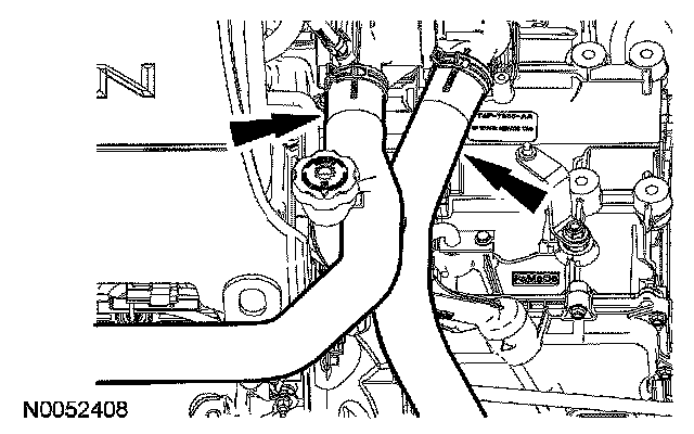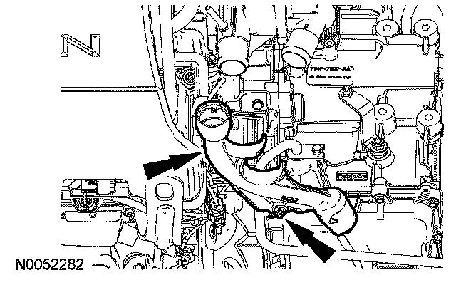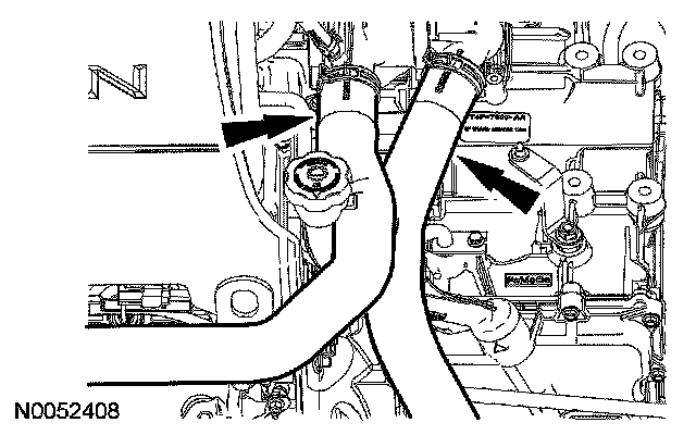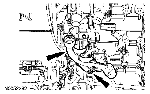 22. Route the coolant hoses in the transmission fluid filler tube.