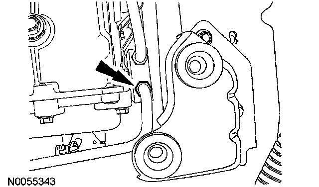 13. Position the transmission fluid cooler thermal bypass valve and transmission fluid cooler tube assembly in place and install the 2 nuts.