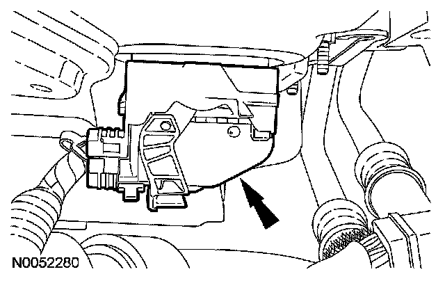 2. Disconnect the mass air flow (MAF) sensor electrical connector and the wiring harness fastener from the air cleaner assembly.