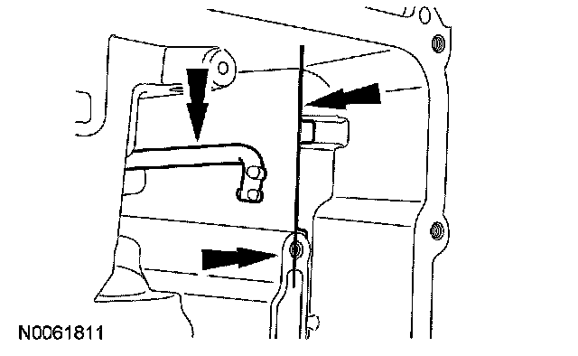 27. CAUTION: Make sure that the park pawl actuator rod does not become disengaged from the park pawl and the abutment or transaxle removal and disassembly is required to reinstall the actuator rod.