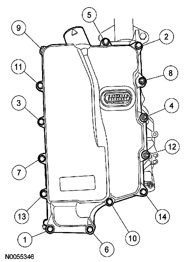 11. CAUTION: Inspect the 20 pin solenoid body connector seal to make sure that the seals is on the inside of the main control cover. Transmission fluid leak will occur.
