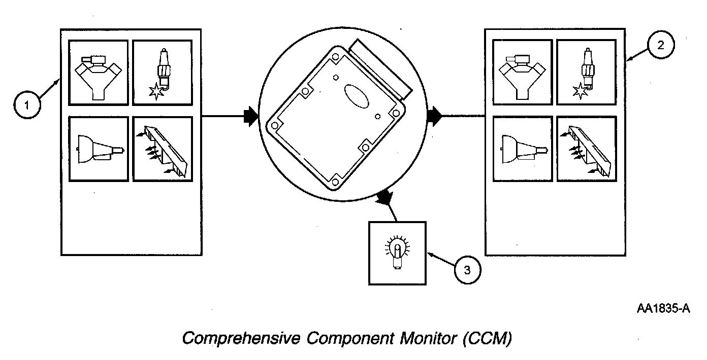 The following is an example of some of the input and output components monitored by the CCM. The component monitor may belong to the engine, ignition, transmission, air conditioning, or any other PCM supported subsystem.