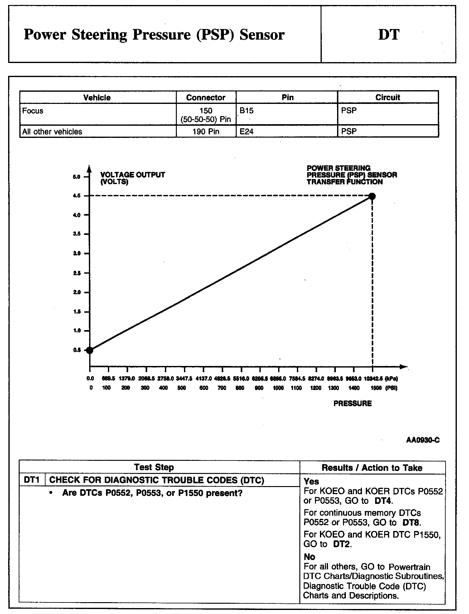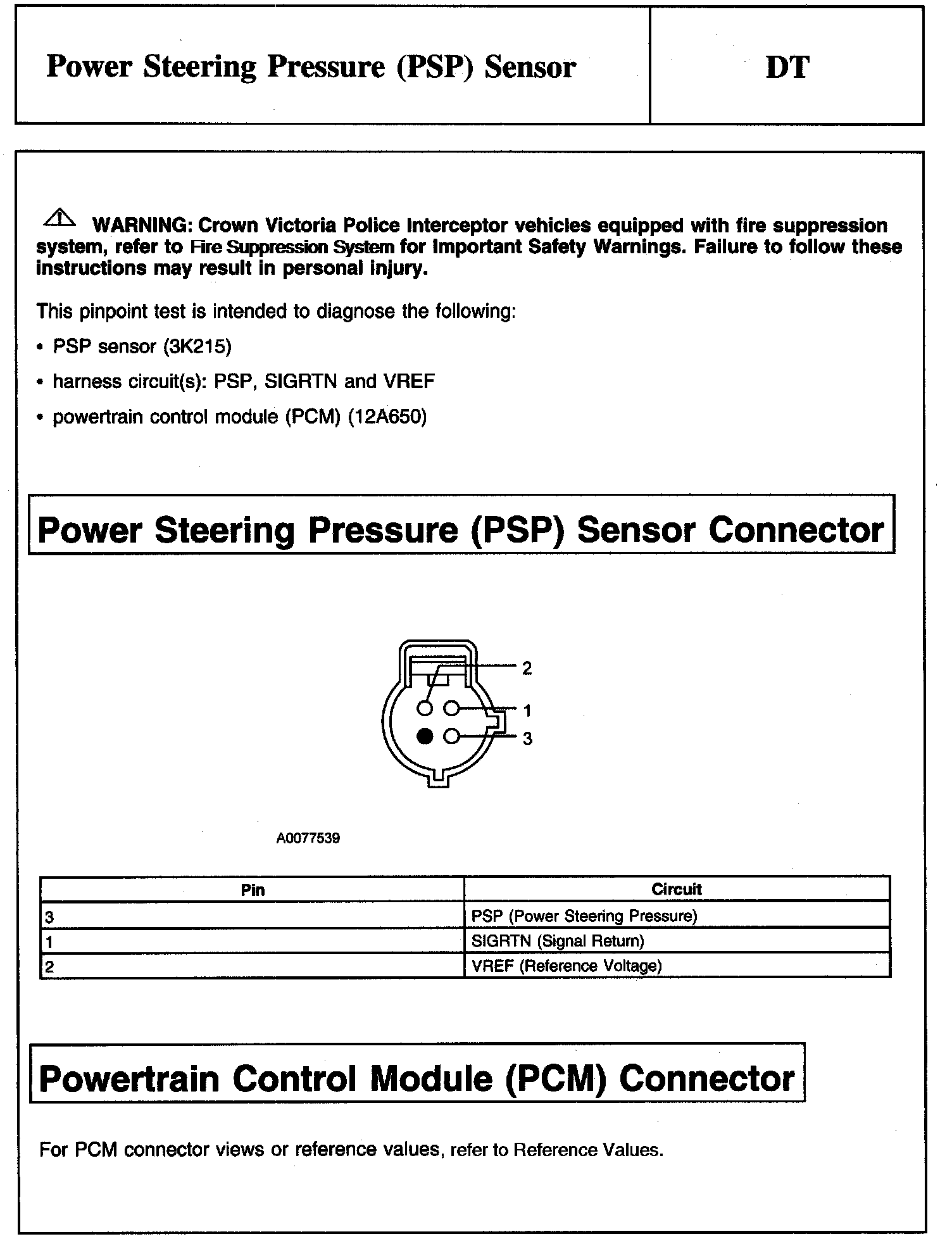 PINPOINT TEST DT: POWER STEERING PRESSURE (PSP) SENSOR