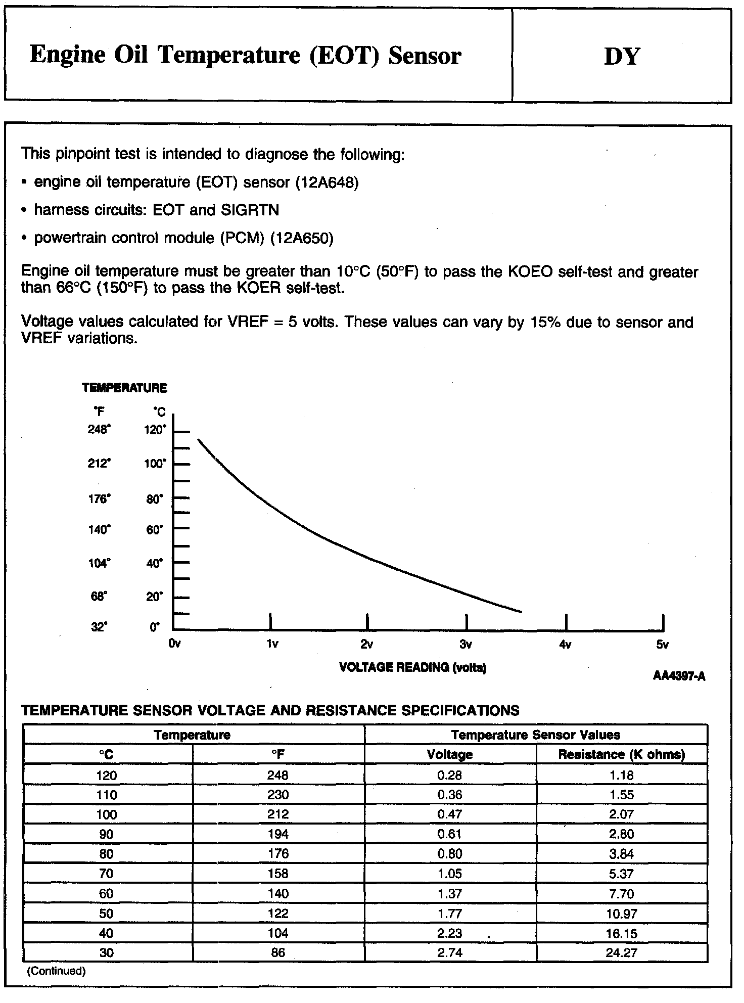 PINPOINT TEST DY: ENGINE OIL TEMPERATURE (EOT) SENSORGraph And Table: